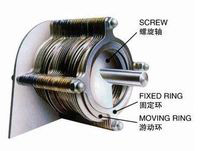 脫水機(jī)的疊螺主體是由固定環(huán)和游動環(huán)相互層疊,螺旋軸貫穿其中形成的過濾裝置.前段為濃縮部,后段為脫水部.